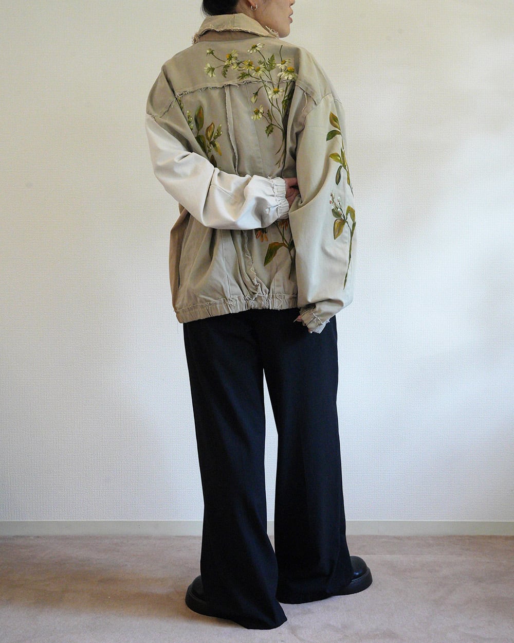 ユーズドのチノ生地で作られた、個性的な切り替えが魅力の綿チノジャケット。