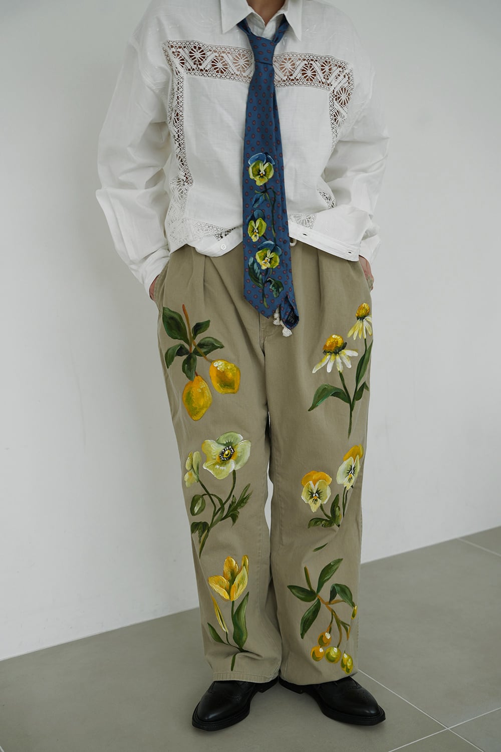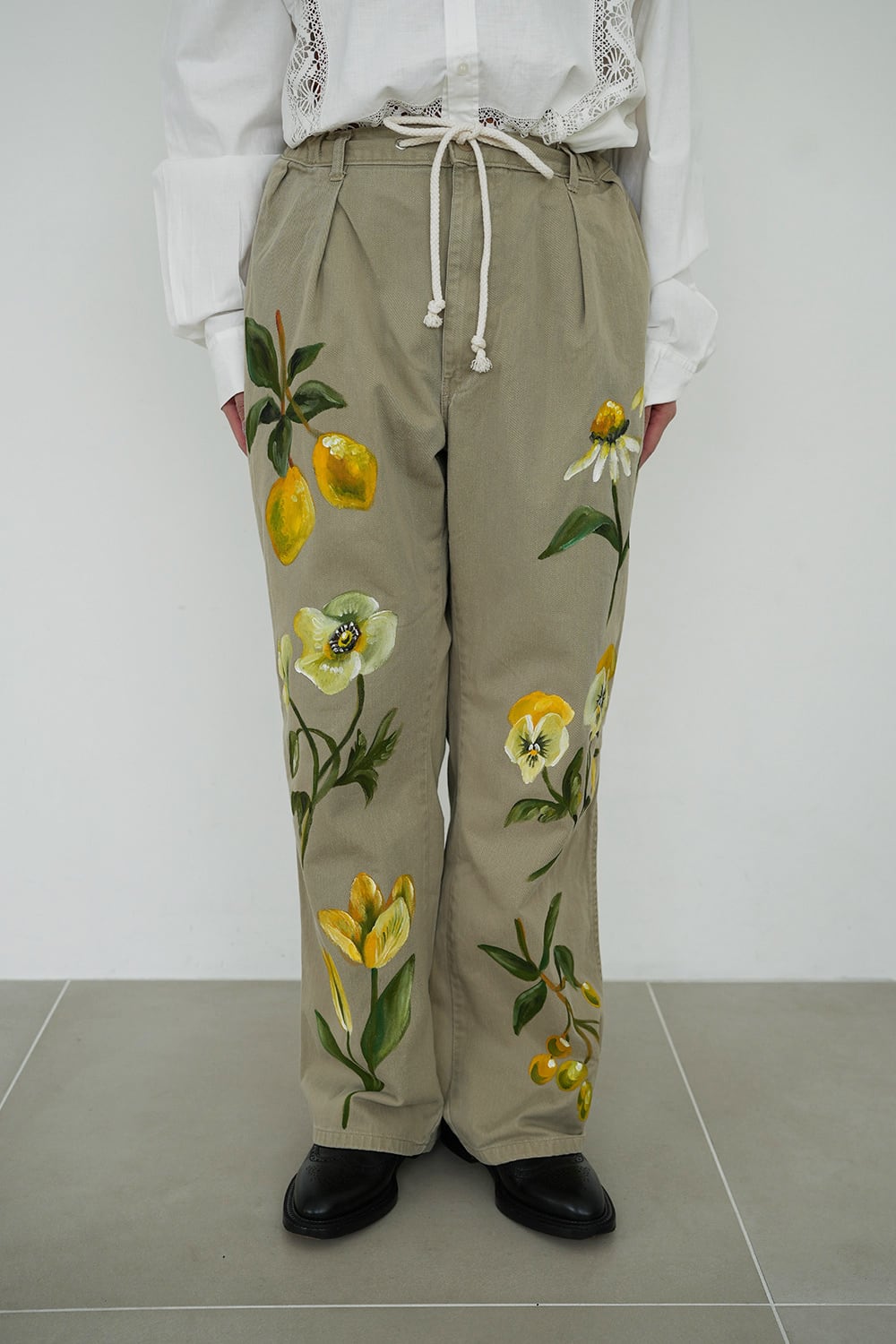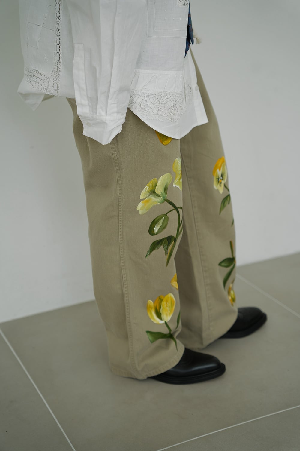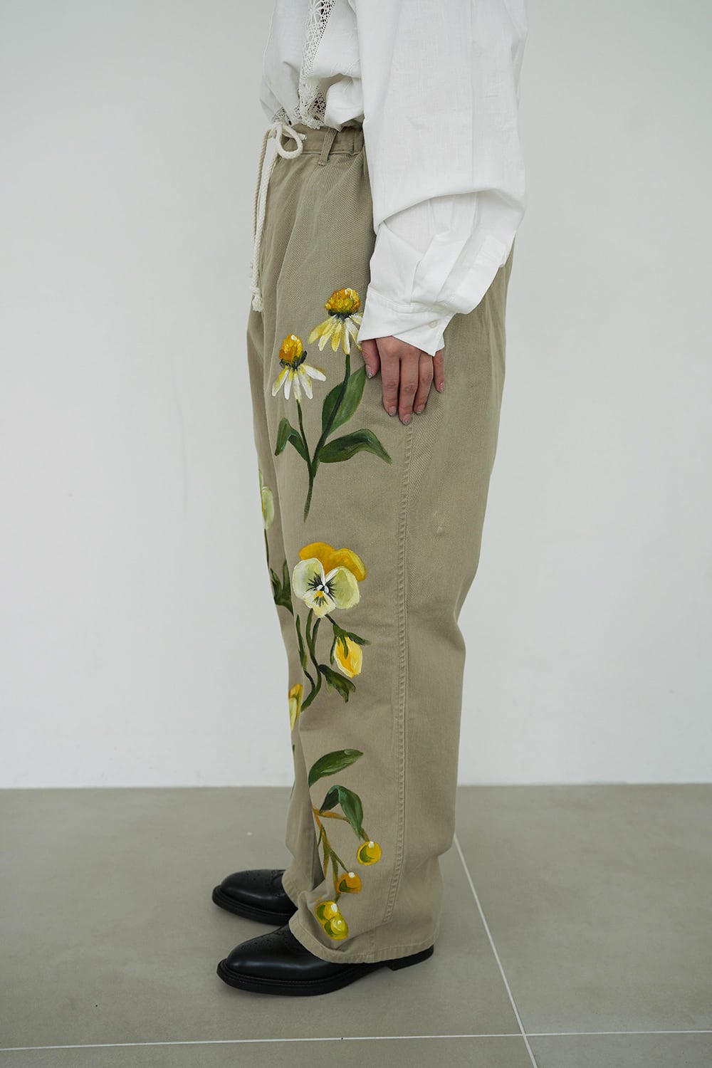 デザイナーによるハンドペイントを施したチノパンツです。