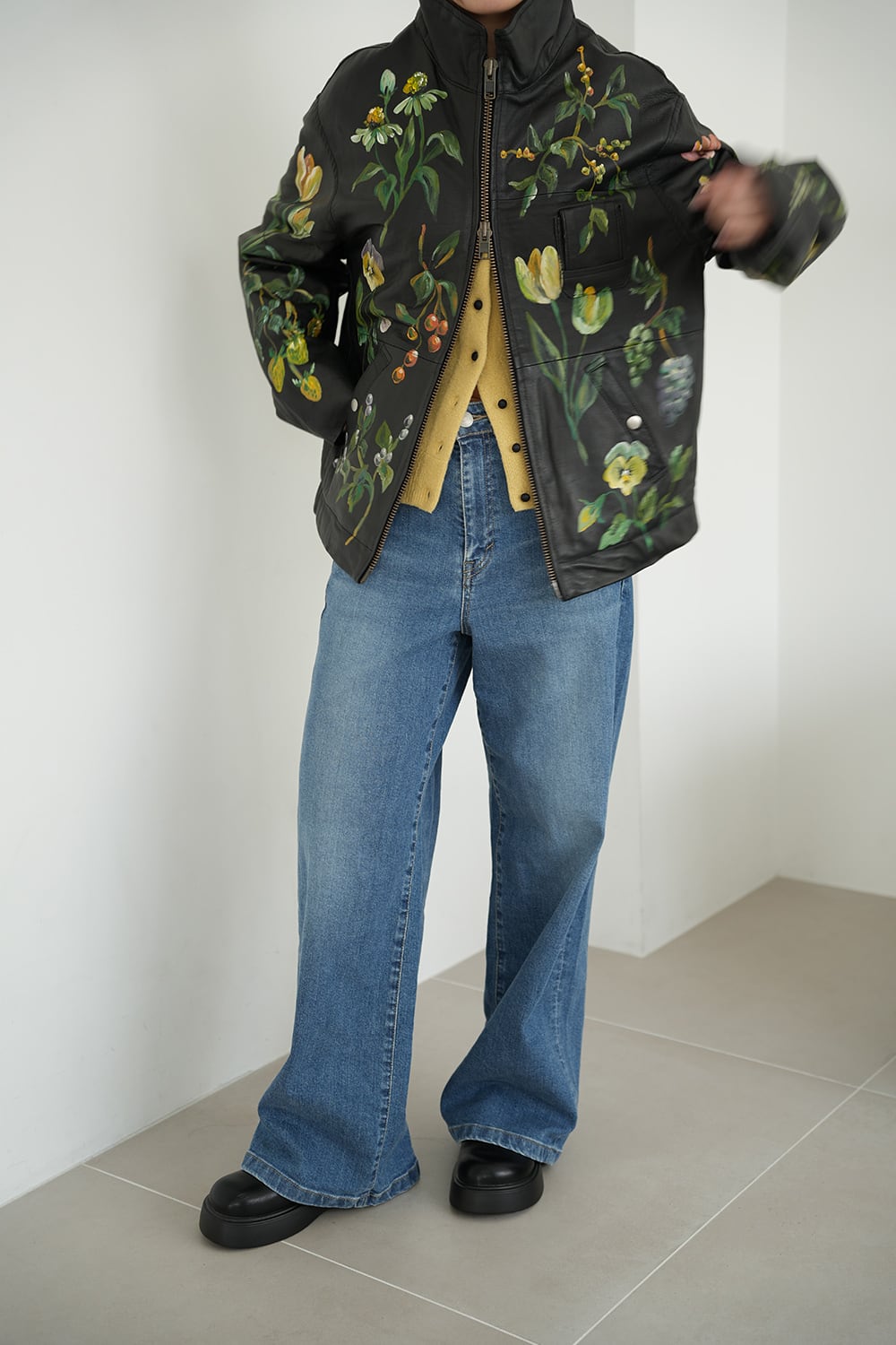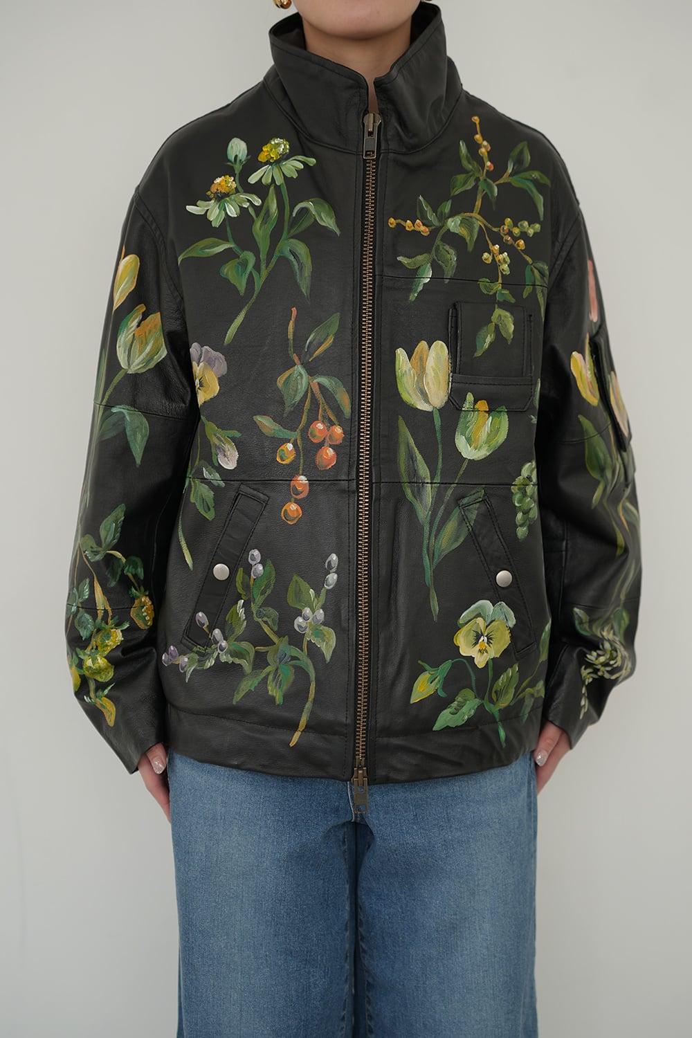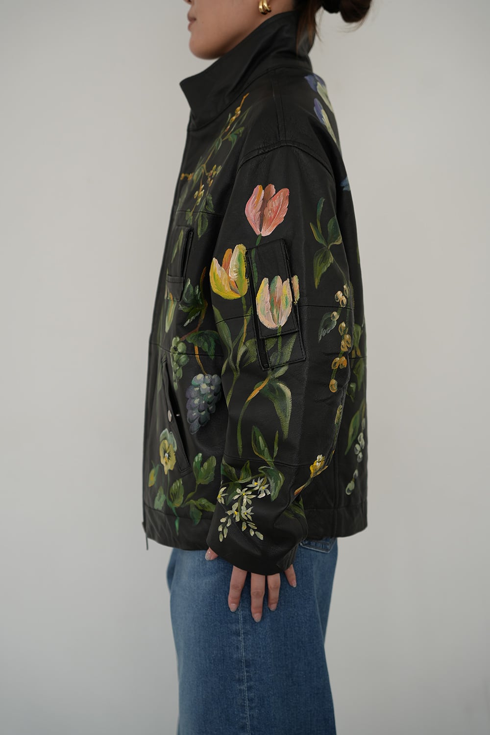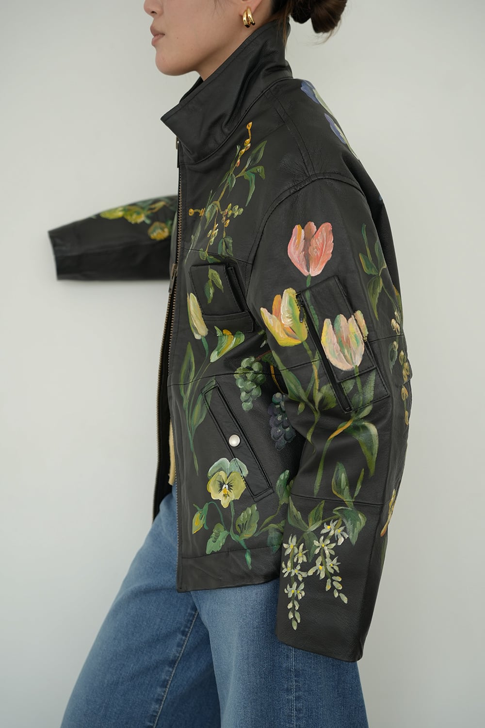 リサイクルレザーを使用してパッチワークしたショートジャケットです。