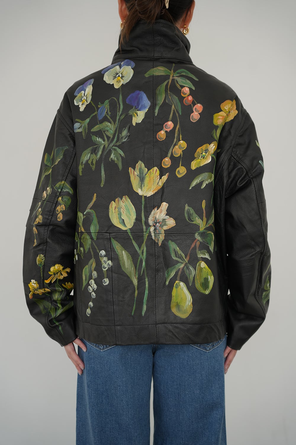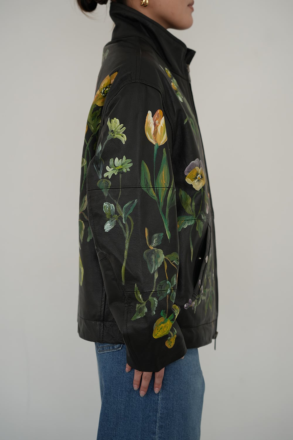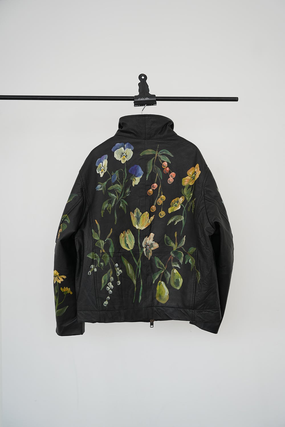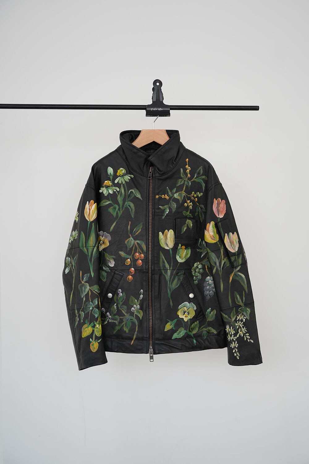 リサイクルレザーを使用してパッチワークしたショートジャケットです。