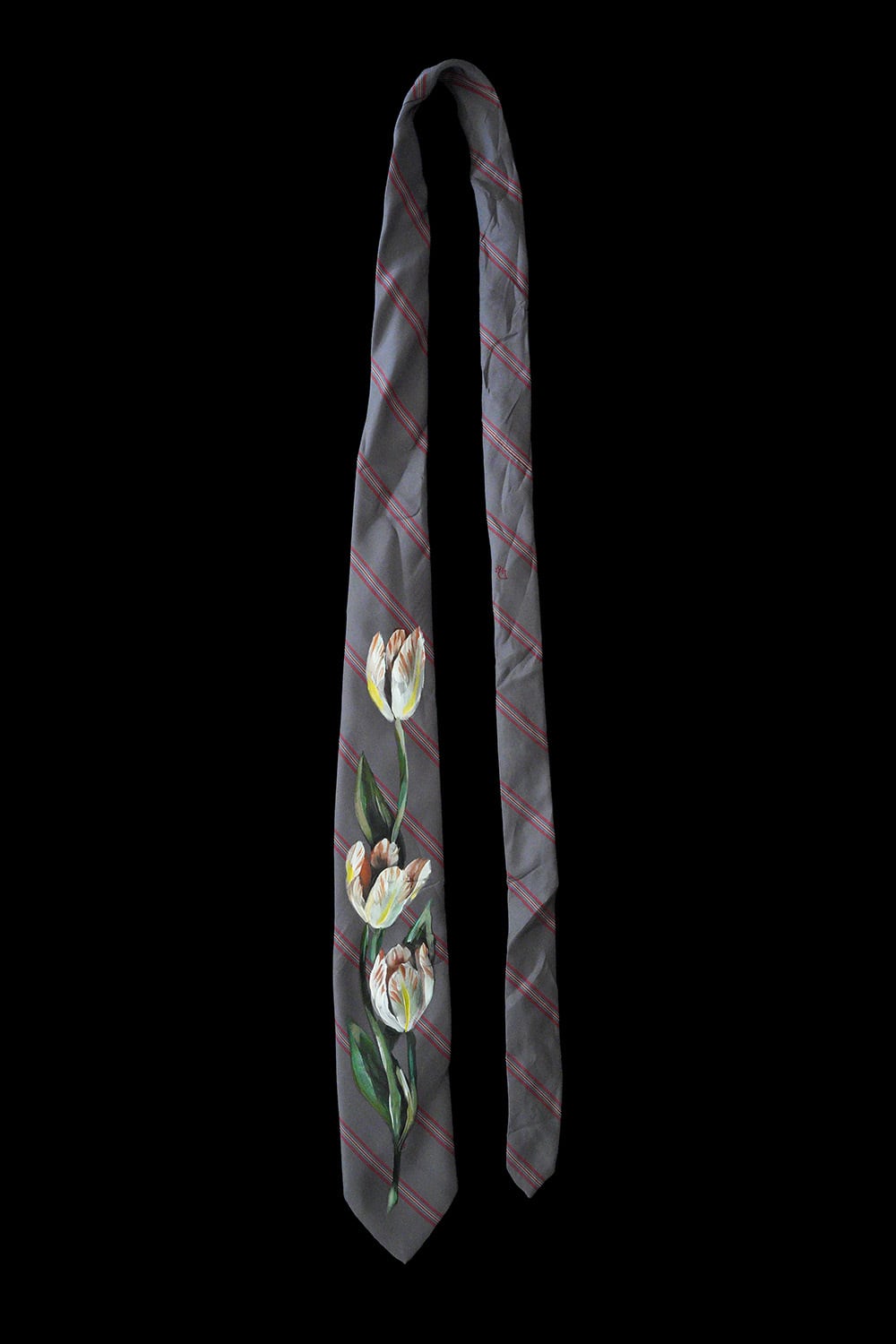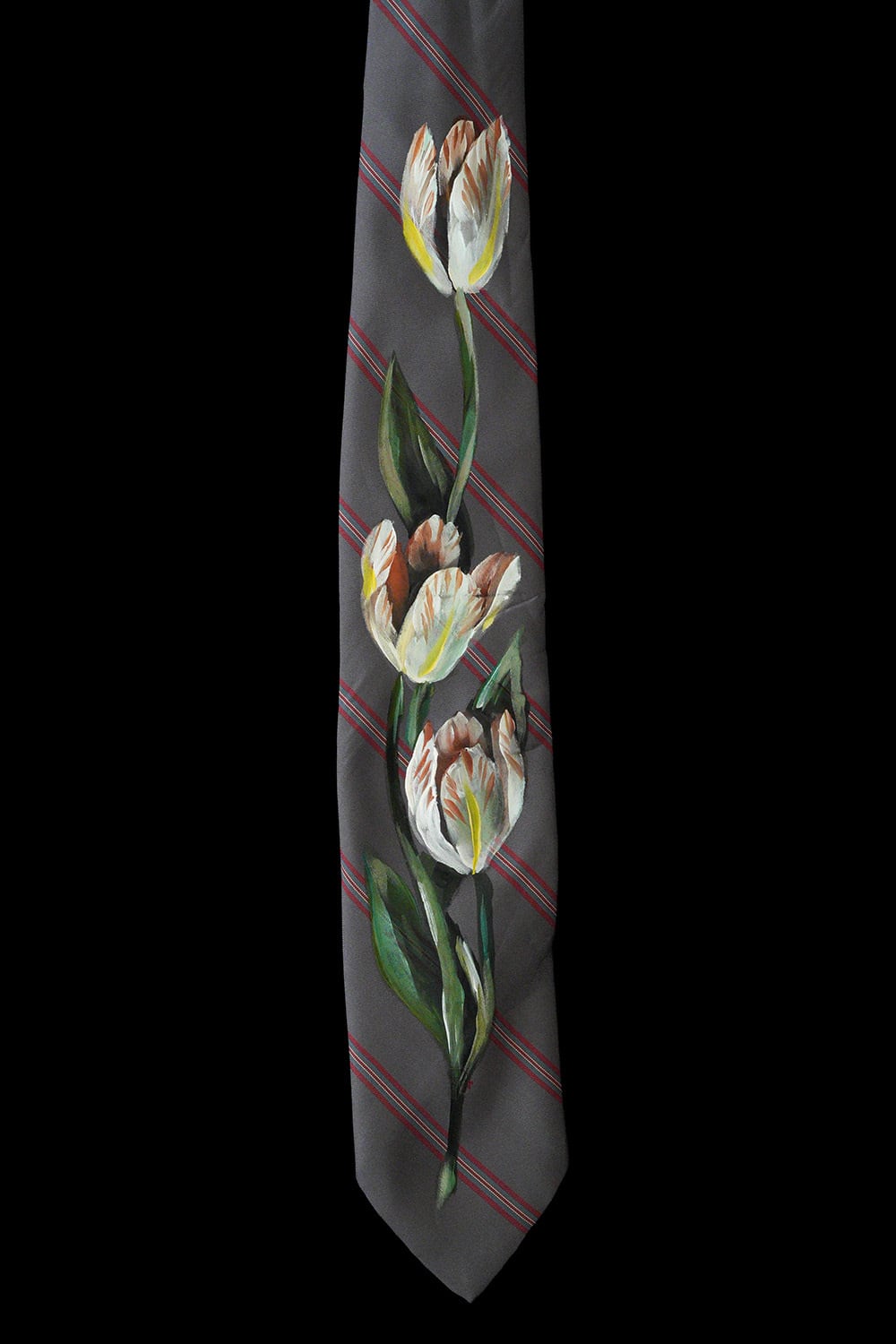 hand painted tie gray tulip