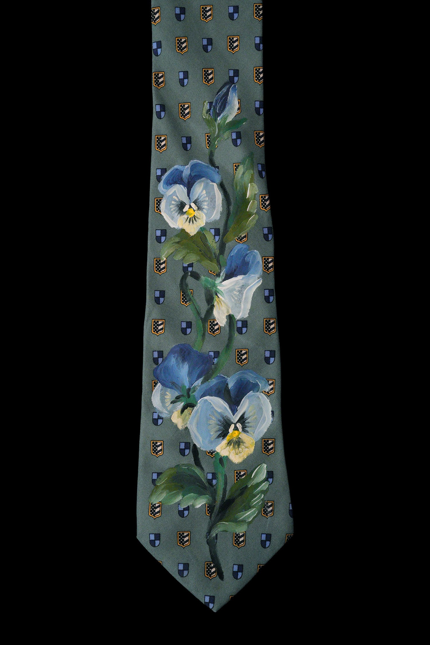 hand painted tie turquoise-dustgreenpansy