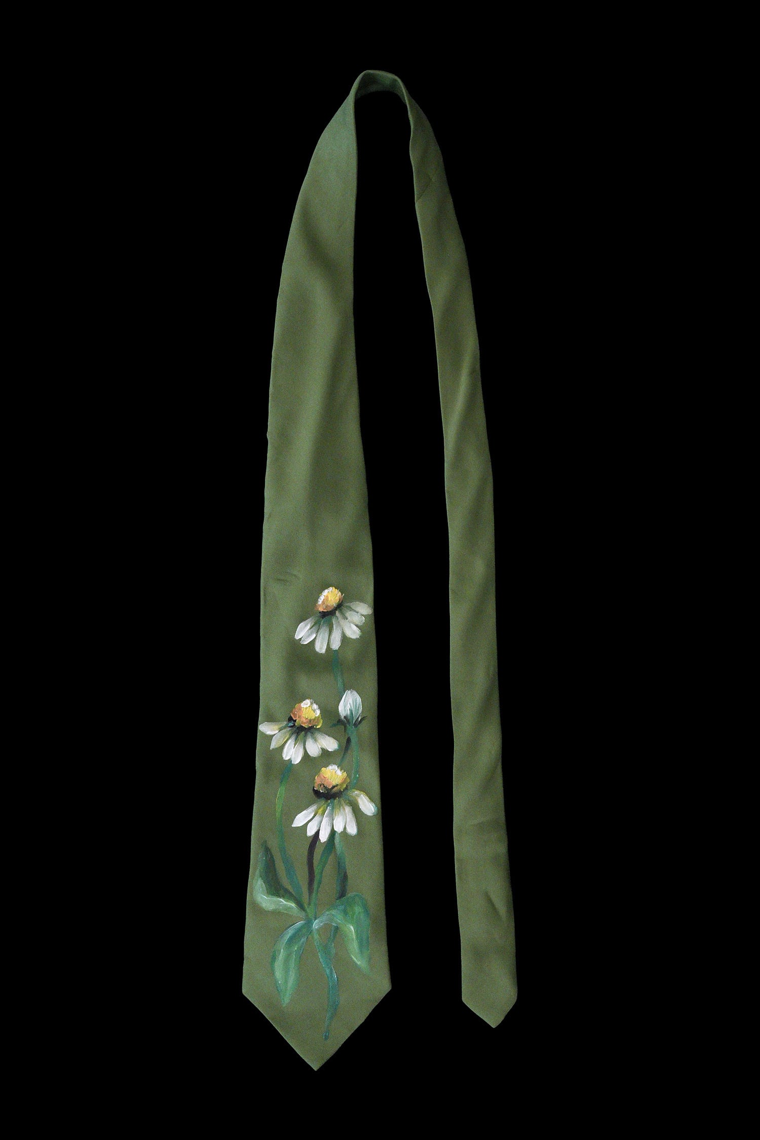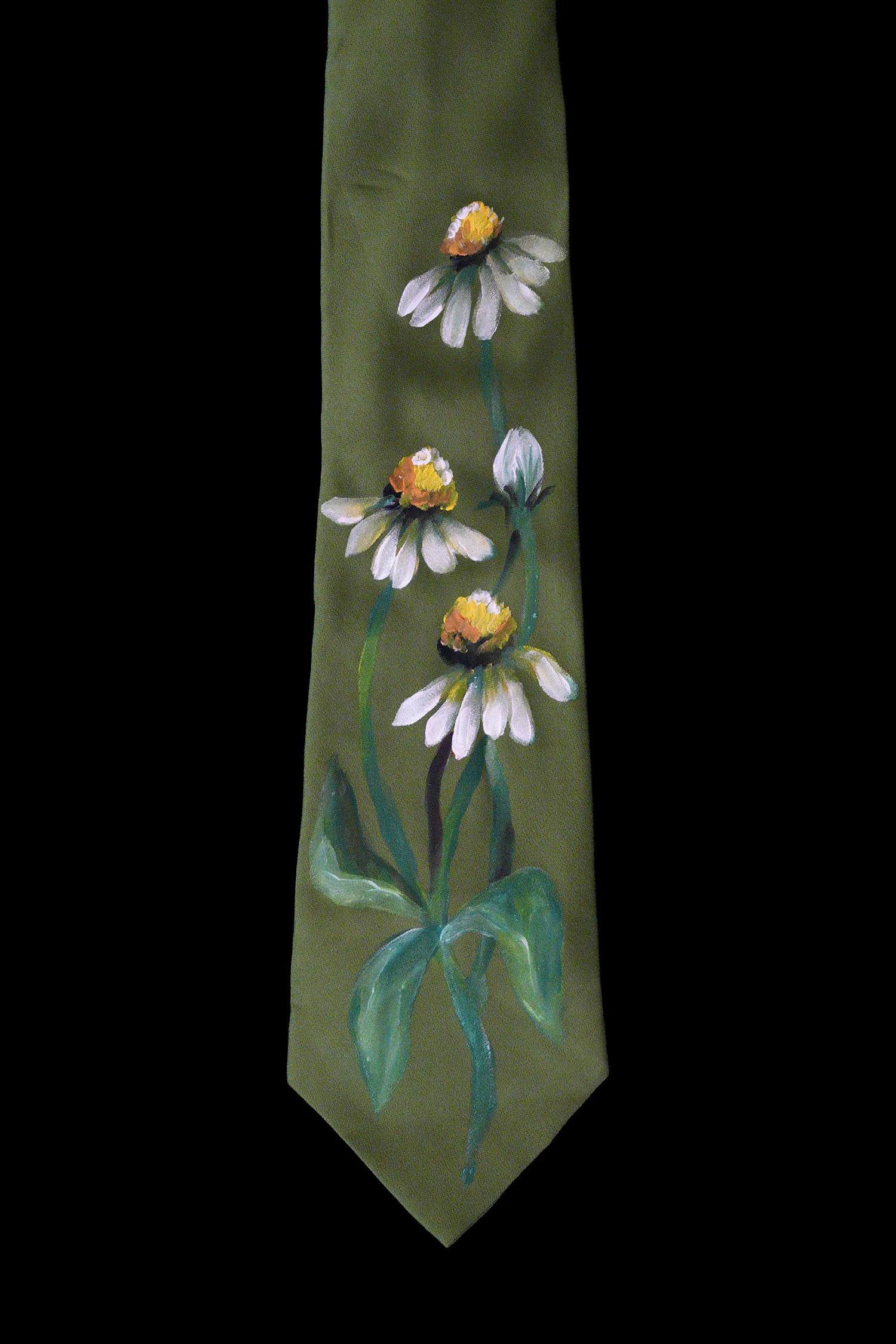 hand painted tie khaki-echinacea