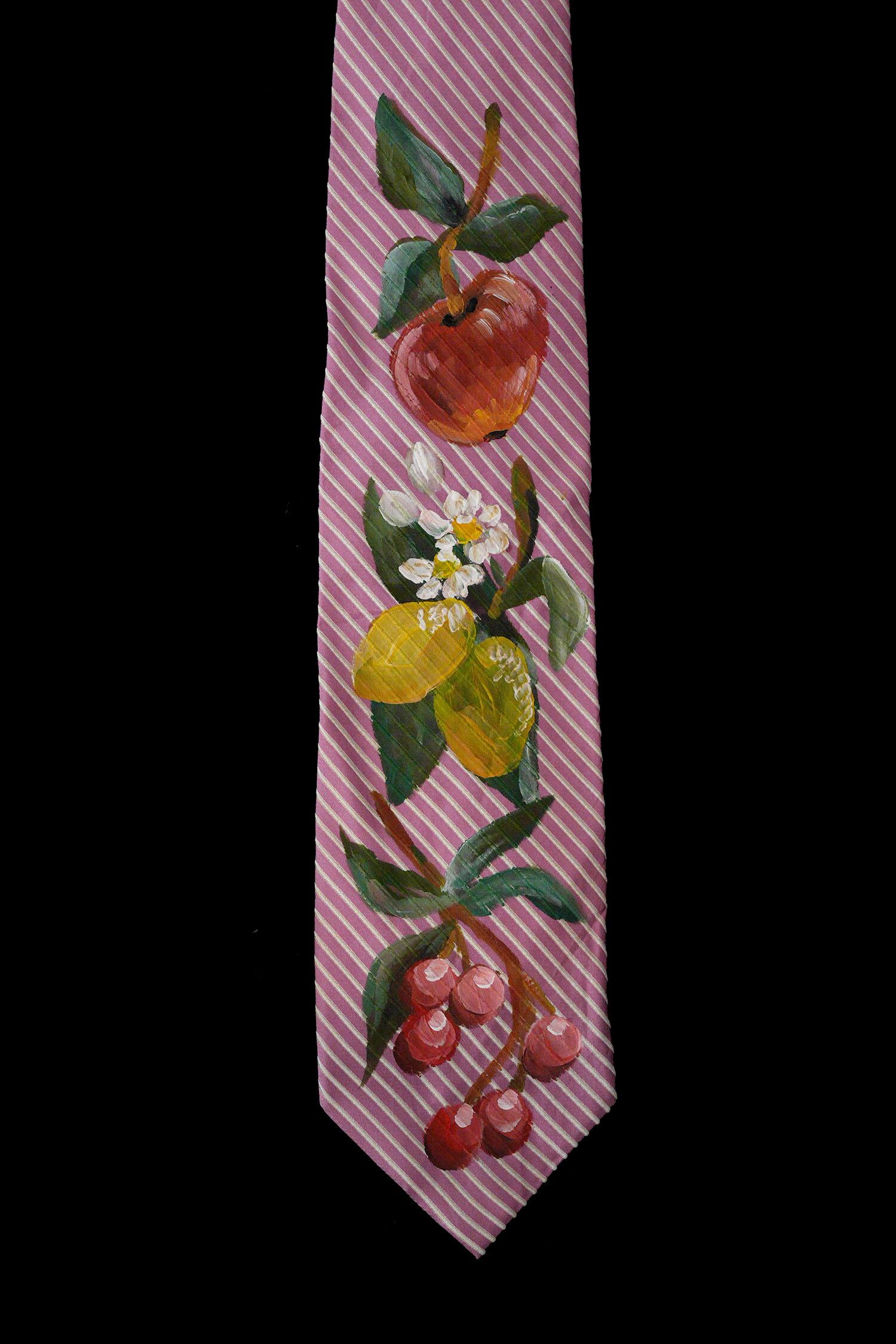 hand painted tie pink-fruit