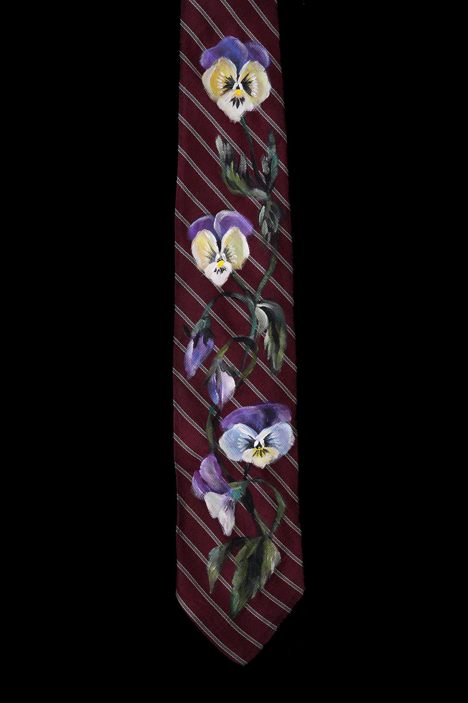 hand painted tie bordeaux-pansy
