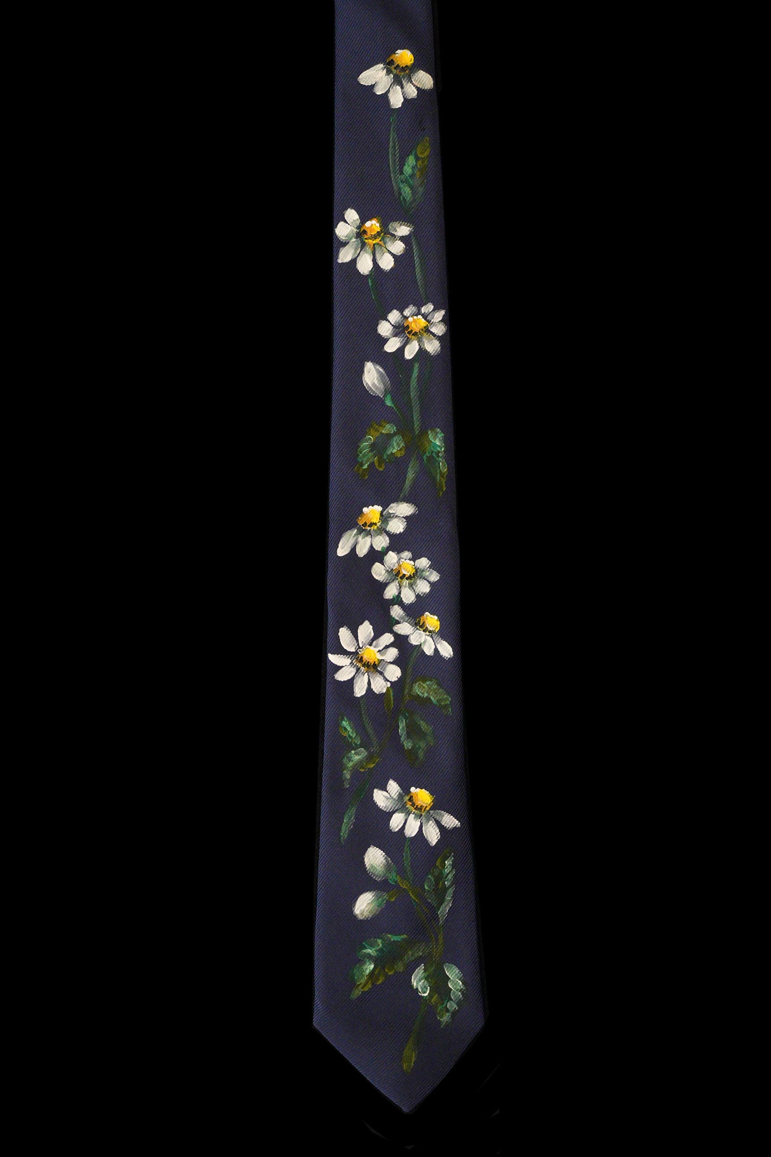 hand painted tie navy-chamomile