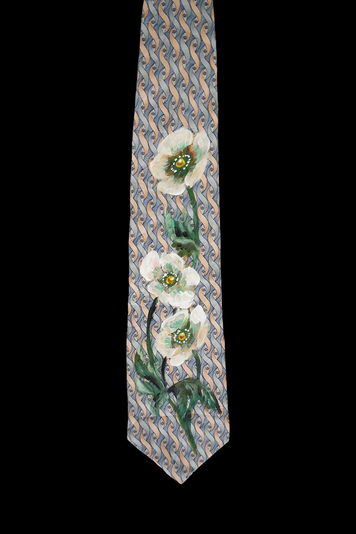 hand painted tie white poppy