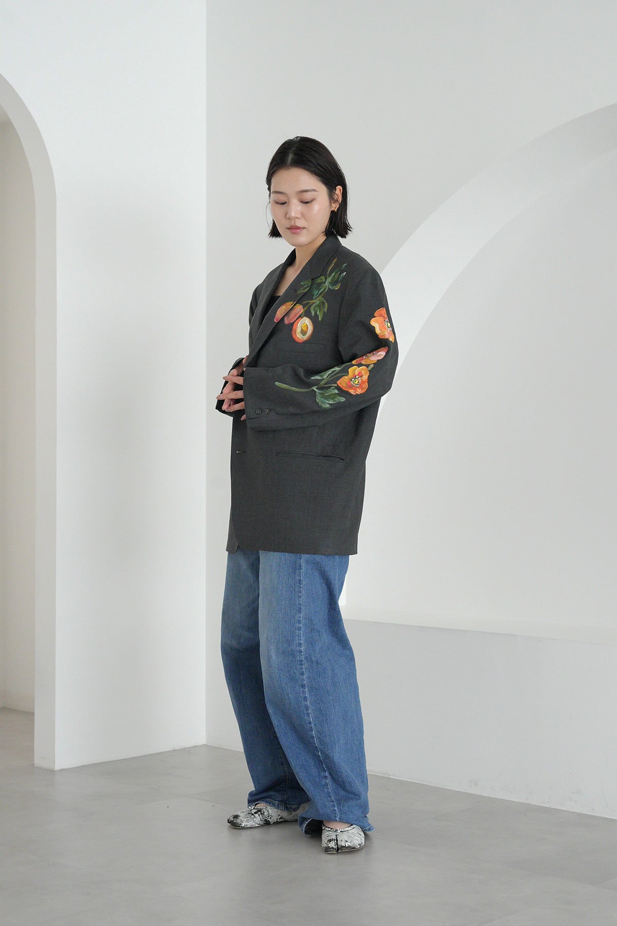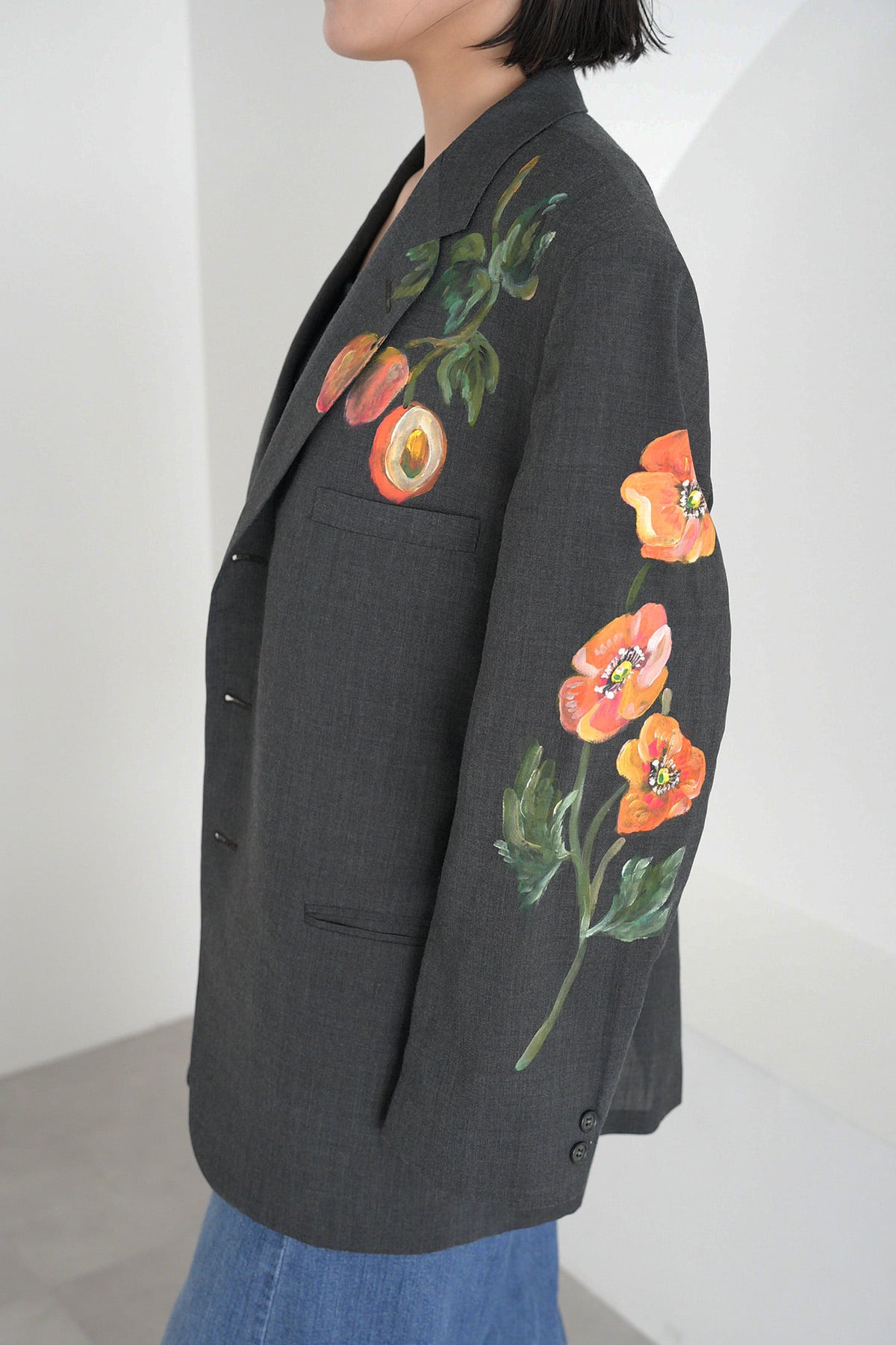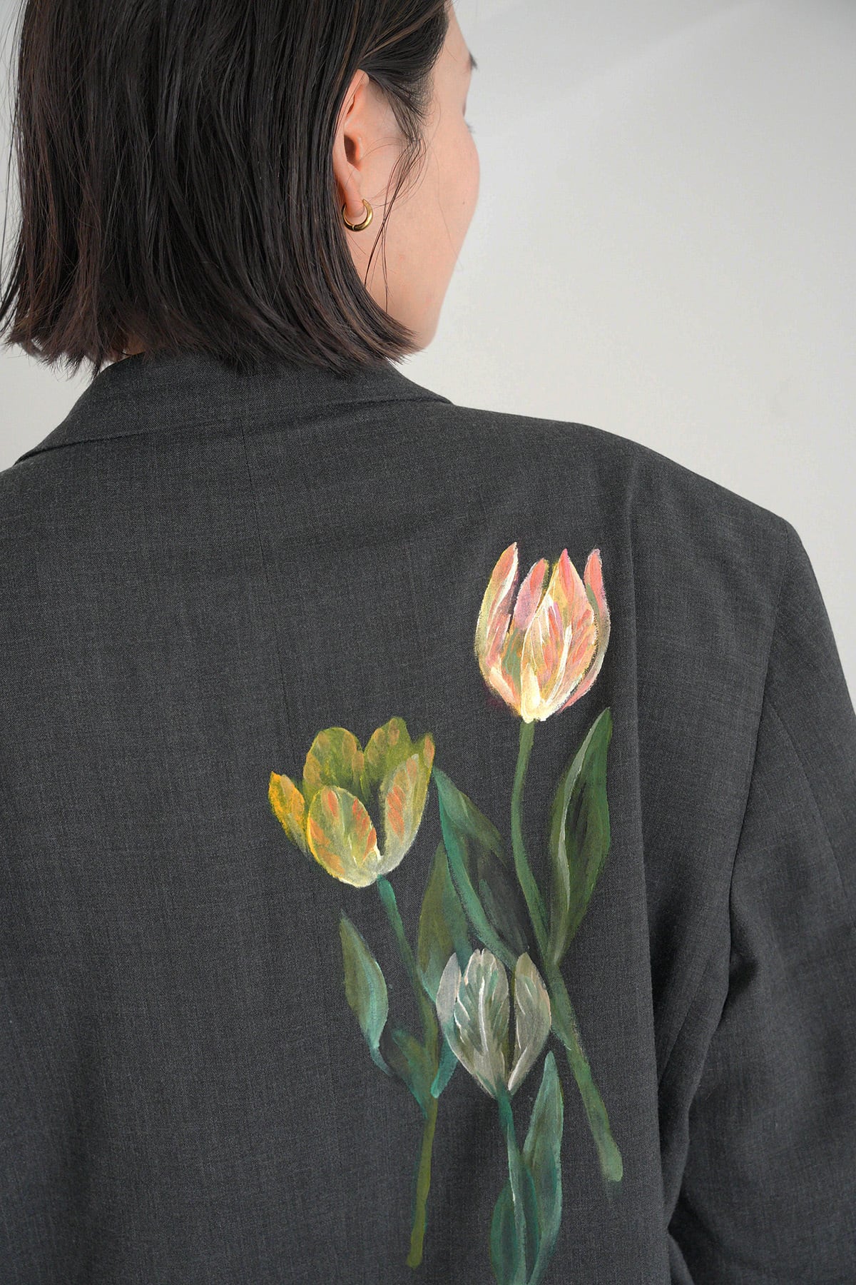 ハンドペイントを施したユーズドのテーラードジャケット。