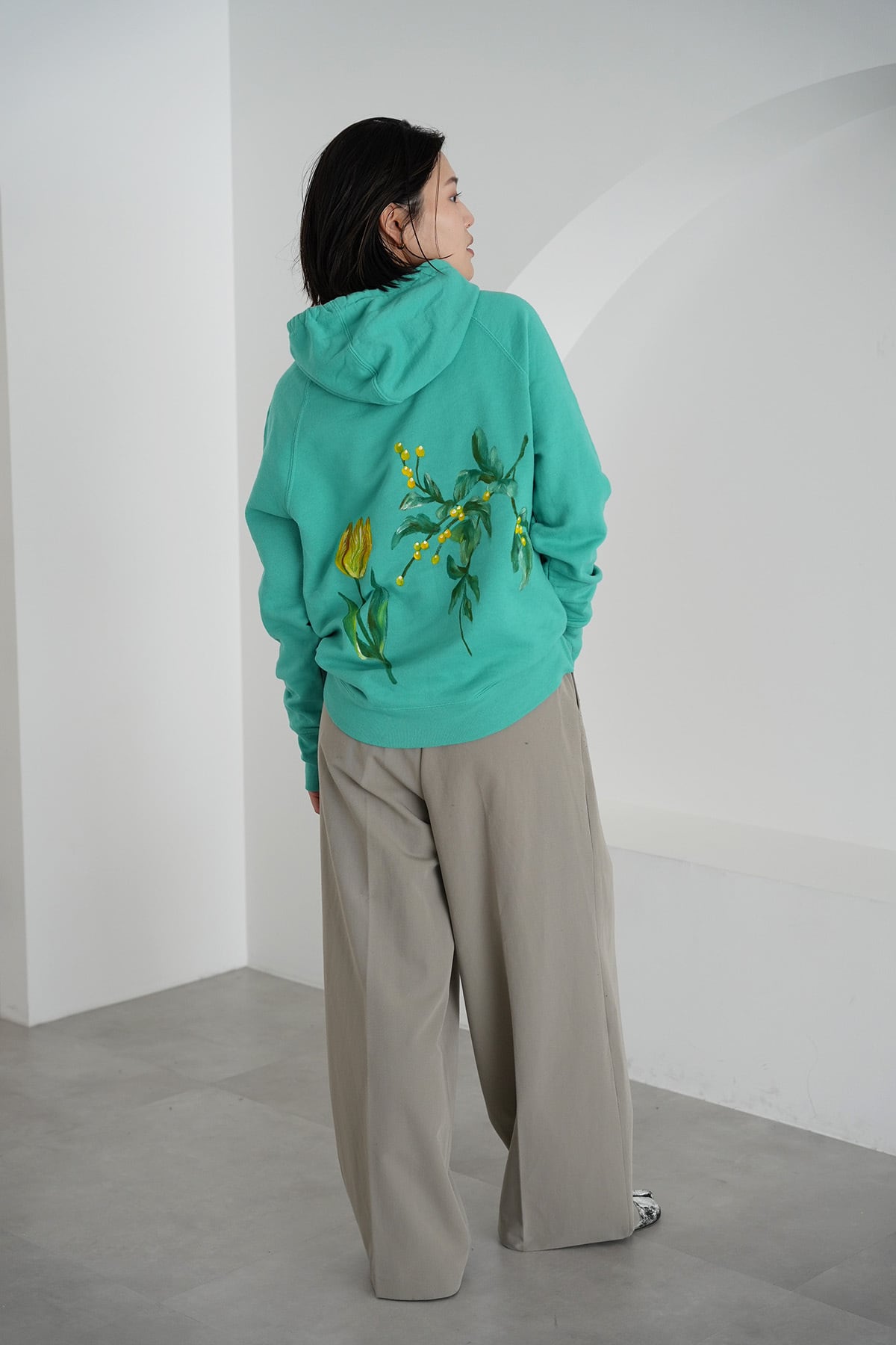 ユーズドのフーディーに手描きのペイントを施した、唯一無二のアイテム。