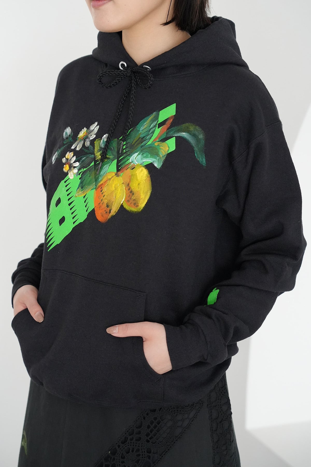 ユーズドのフーディーに手描きのペイントを施した、唯一無二のアイテム。