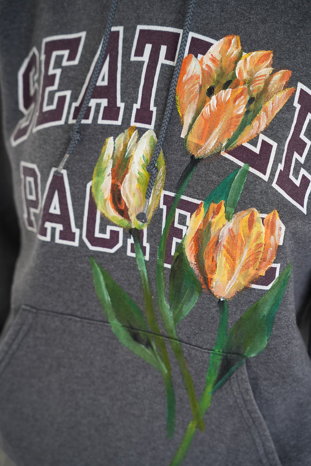ユーズドのフーディーに手描きのペイントを施した、唯一無二のアイテム。