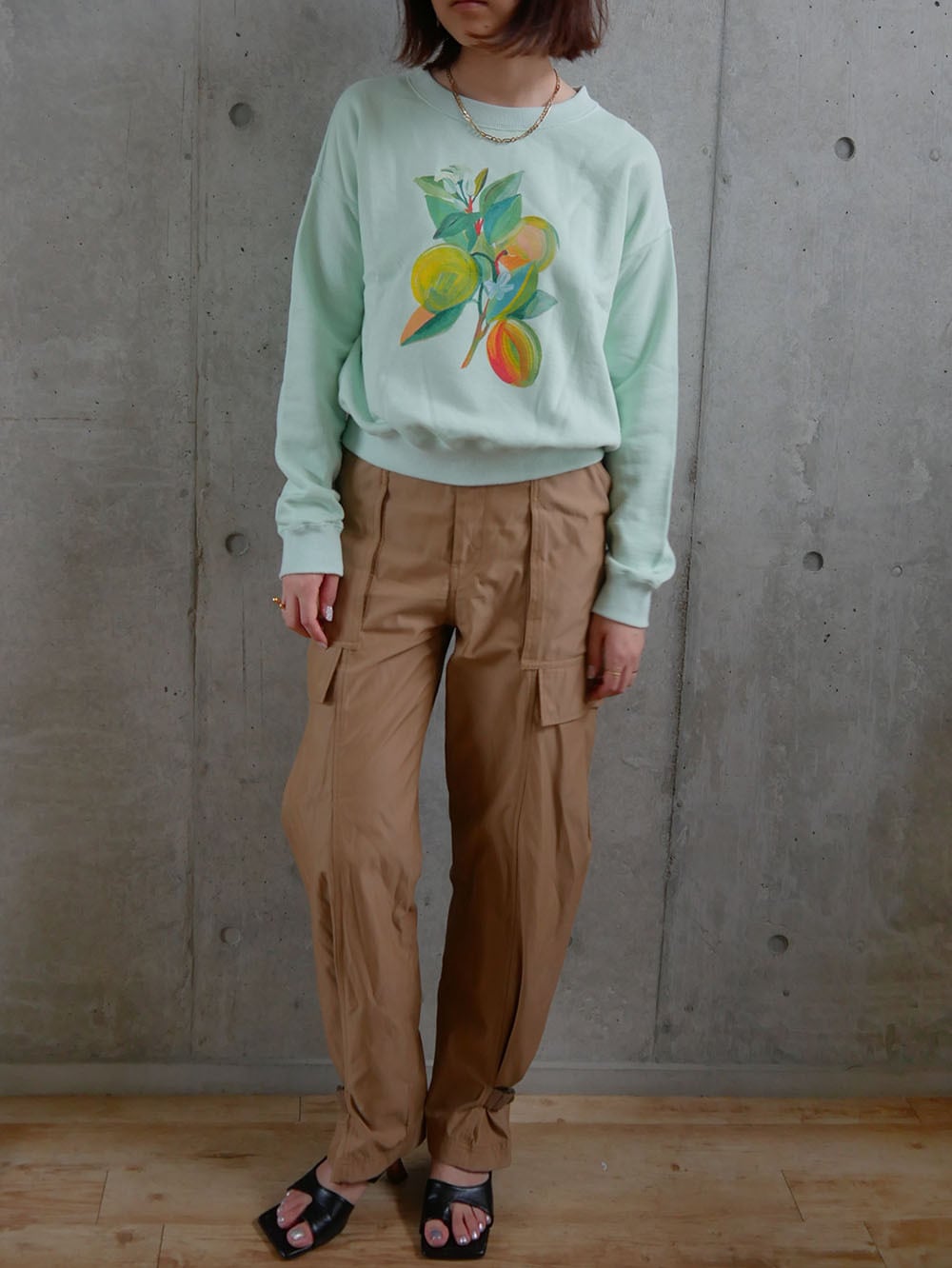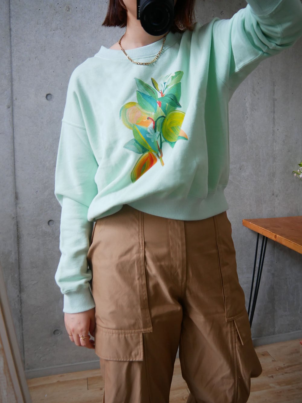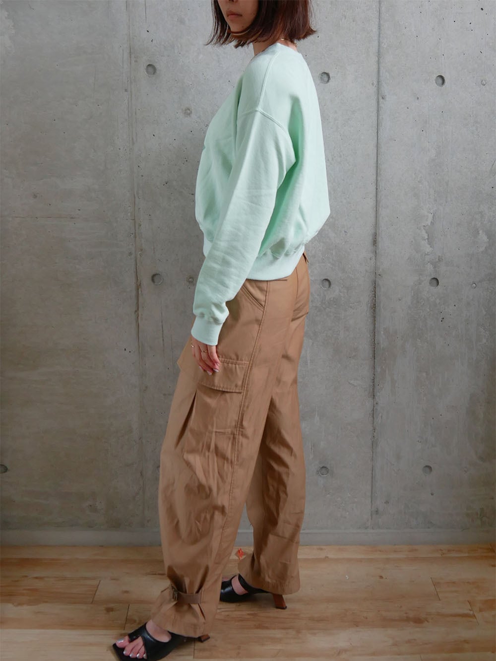 着丈が短めなのでロング丈のスカートや、ロングパンツなどと
